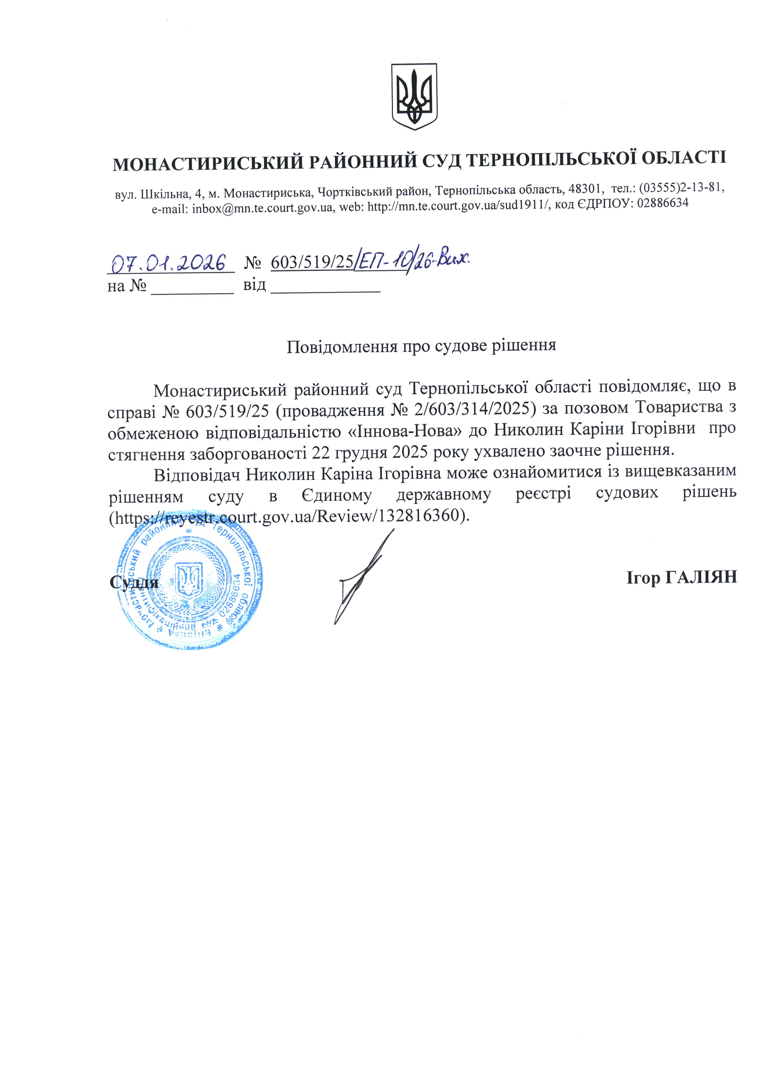 Повідомлення про судове рішення