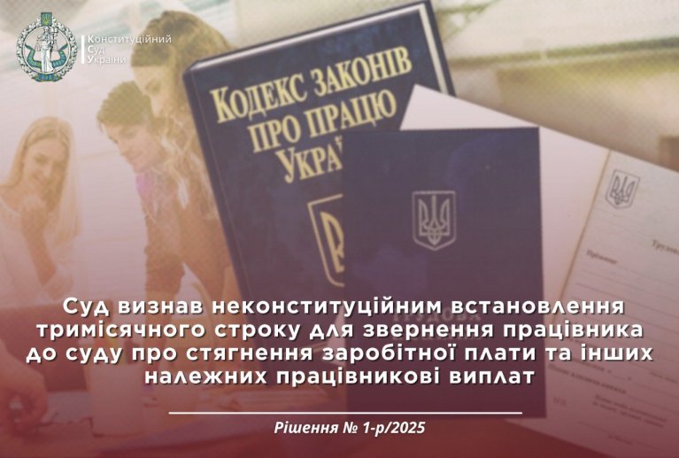 Дослідивши питання, порушені в конституційному поданні, Суд виснував, що оспорюваний припис Кодексу в частині встановлення тримісячного строку для звернення працівника до суду про стягнення заробітної плати та інших належних працівникові виплат є таким, що не відповідає Конституції України.