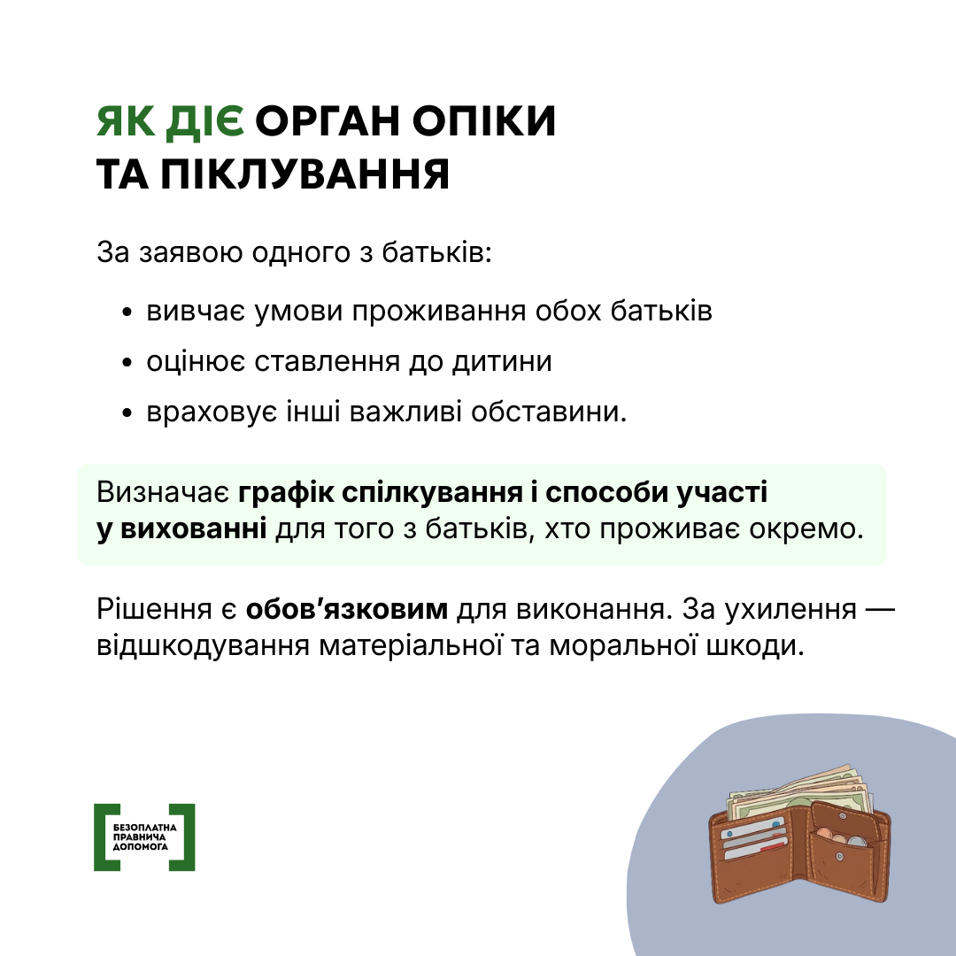Той із батьків, хто живе окремо, має право брати участь у вихованні та спілкуватися з дитиною, а інший не має права цьому перешкоджати, якщо це не шкодить дитині.